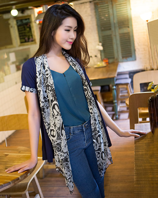 Áo Khoác Cardigan Phối Voan Vạt Lệch
