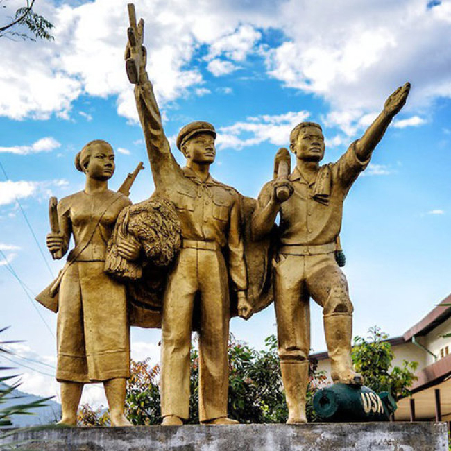 12h00: Đến Viêng Xay, Quý khách ăn trưa tại nhà hàng sau đó thăm quan “THÀNH PHỐ BÍ MẬT” - biểu tượng đẹp đẽ của tình hữu nghị Việt - Lào trong suốt những năm kháng chiến chống Mỹ giữa quân tình nguyện Việt Nam và lực lượng Pathet Lào. Quý khách sẽ thăm quan địa điểm tiêu biểu nhất của Thành phố Bí mật là nơi ở và làm việc của đồng chí Khamtay Siphandone.