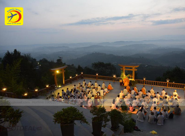 08h30: Xe đưa đoàn đến với Bảo Lộc, đoàn tham quan Linh Quy Pháp Ấn, “chốn bồng lai tiên cảnh trong lòng phố núi Lâm Đồng”. Nơi đây là cảnh quay đẹp ngỡ ngàng trong ca khúc “Lạc Trôi” nổi tiếng của ca sĩ Sơn Tùng. Cảnh sắc hùng vĩ của núi rừng kết hợp cùng với sự thanh tĩnh, nghiêm trang và có chút hư ảo của ngôi chùa, làm du khách không khỏi ngỡ ngàng khi đến tham quan.