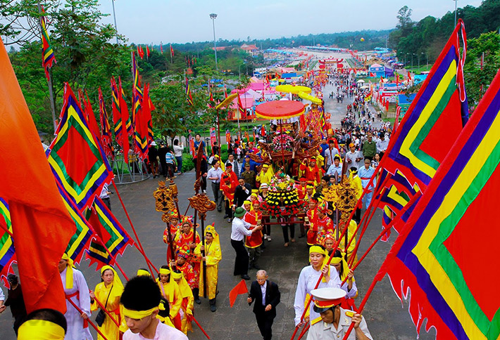 Khu di tích lịch sử Đền Hùng - nơi mà cách đây hơn 4.000 năm các Vua Hùng đã lập nên nhà nước Văn Lang- quốc gia đầu tiên của nước ta trên đất tổ Vĩnh Phú. Và cũng tại đây Quý khách như được sống lại thời của các Vua Hùng với chuyện về nàng công chúa Tiên Dung, sự tích bánh Chưng - bánh Dày…Vượt qua hơn 200 bậc thang Quý khách sẽ đến Đền Hạ, Đền Trung, Đền Thượng, Lăng Vua Hùng, Đền Giếng…Đứng ở độ cao trên 100m Quý khách có thể chiêm ngưỡng cả một vùng đất rộng của trung tâm Bắc Bộ với ngã ba Hạ, nơi sông Lô chảy vào Sông Hồng, các dãy núi của hệ núi Tam Đảo và Ba Vì xen lẫn với những cánh đồng tốt tươi, những làng quê trù phú của miền trung du Bắc Bộ…