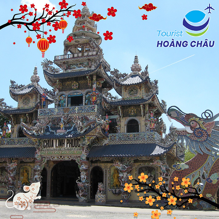 15h30: Quý khách viếng Chùa Linh Phước - hay còn gọi là Chùa Ve Chai ngôi chùa nổi tiếng được xây dựng bằng nhiều mảnh chai, đây là một điểm thu hút hàng trăm lượt Quý khách thập phương mỗi ngày. Chùa Linh Phước với kiến trúc cổ kính, ngoài tòa tháp 7 tầng vươn cao, chùa còn hấp dẫn Quý khách với bức tượng Quán Thế Âm khổng lồ được kết bằng hoa bất tử (3 tấn hoa), với lối kiến trúc rồng phượng uốn lượn rất tinh tế và uyển chuyển.