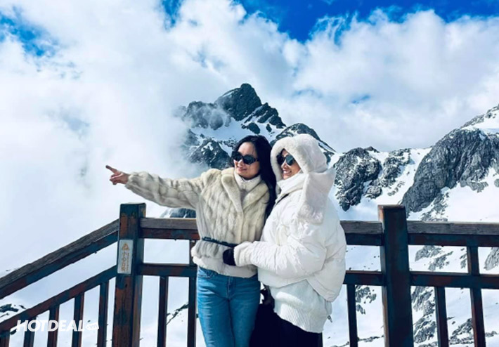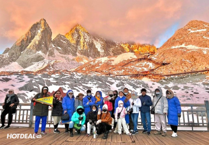 - Núi Tuyết Ngọc Long cách trung tâm phố cổ Lệ Giang về phía Bắc, quanh năm tuyết phủ trắng bao phủ một khu vực rộng lớn giống như con rồng lớn nên được gọi là “Ngọc Long”. Nơi đây còn được so sánh với “Thụy Sĩ Á Đông” như rặng Pyrenes (ngọn núi nổi tiếng tại biên giới Pháp và Thụy Sỹ). Đoàn đi cáp treo lớn lên núi với độ cao 4600m và chụp ảnh lưu niệm.