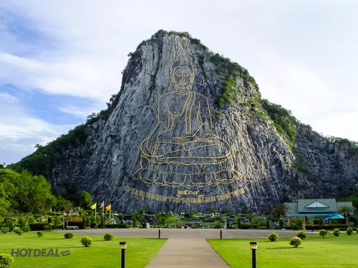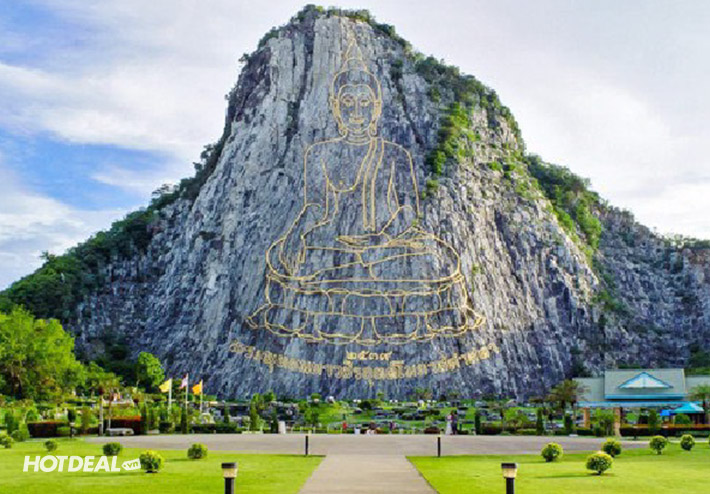 • Tiếp tục tham quan Trân Bảo Phật Sơn hay còn gọi là Khao Chee Chan, nơi được tạo nên nhân dịp kỷ niệm 50 năm đăng cơ của nhà vua Thái Lan. Đây là một ngọn núi đẹp nổi tiếng nằm ở tỉnh Chon Buri, cách Pattaya – thiên đường biển đảo Thái Lan chỉ khoảng 15 km, nổi bật giữa thiên nhiên hùng vĩ và vẻ đẹp hoang sơ của thiên nhiên là bức tượng nổi Thích Ca Mâu Ni Phật đang ngồi tọa thiền được tạc trên vách núi cao, bức tượng cao đến hơn 100 mét, rộng khoảng 70 mét, được đúc nổi hoàn toàn bằng vàng ròng 24 cara, được tiến hành xây dựng vào năm 1996 nhân dịp Quốc vương Rama IX trị vì vương quốc Thái Lan được 50 năm.