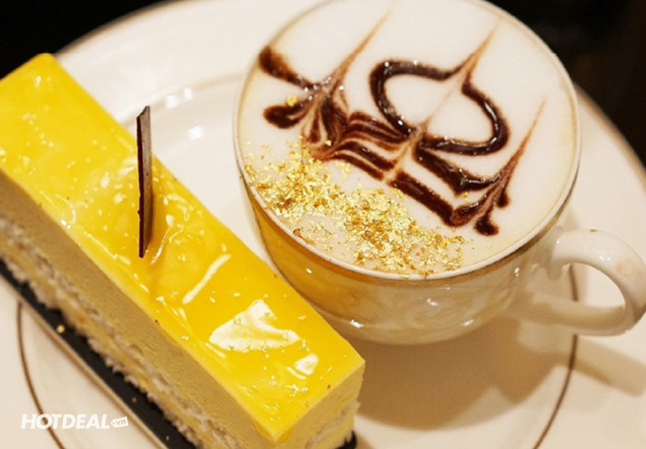 • Thưởng thức cafe vàng Dubai và bánh phủ vàng hoàng gia đặc trưng tại khách sạn mang hơi hướng phương Tây.