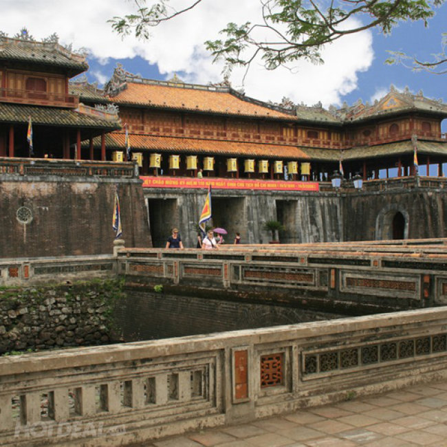 13h00: Xe sẽ đưa quý khách đến Đại Nội. Bên trong Hoàng Thành là một chuỗi các cung điện và miếu thờ. Đây là nơi ăn ở và làm việc của 13 đời vua nhà Nguyễn cùng với các bậc phi tần, nơi chứa ẩn nhiều câu chuyện chốn thâm cung và uẩn khúc của các đời vua chúa. Trải qua nhiều biến động và thời gian, số lượng các công trình chỉ còn lại chưa đến một nửa.