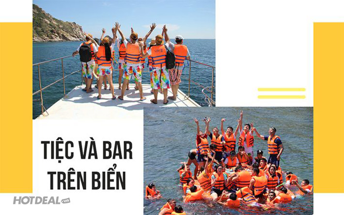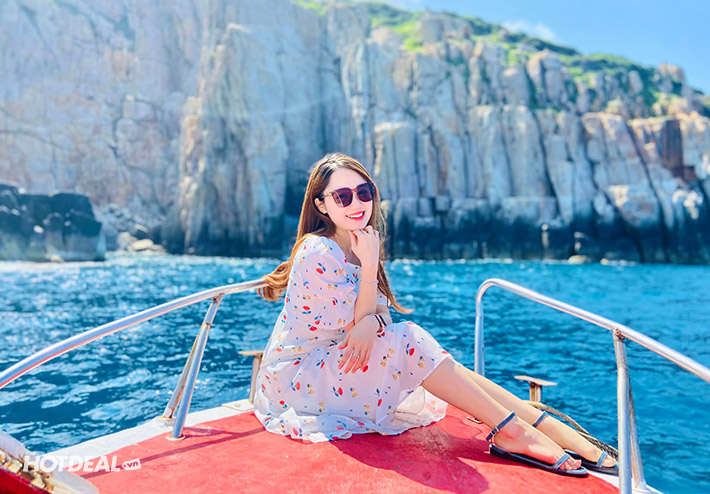 Quý khách lên tàu chở tham quan Hang Yến, Vịnh Đá Vách, tắm Bãi Cây Me, xem san hô.