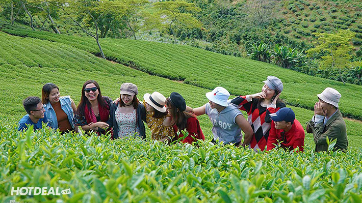 15h00: Xe khởi hành đưa đoàn tham quan Đồi Chè Cầu Đất - một địa điểm sống ảo vô cùng hấp dẫn. Nơi gắn liền với những ngọn đồi ươm trà xanh mướt, thẳng tắp. Với diện tích 220 ha, đồi chè Cầu Đất Farm là điểm đến trong lành cho những ai muốn tìm về chốn đồng quê yên tĩnh. Quý khách đừng nên bỏ lỡ chụp hình với đồi chè xanh mát, trải dài vô tân trên vùng đồi núi, khám phá bình trà cao nhất Việt Nam, tọa lạc tại độ cao 1.650m so với mặt nước biển, có kích thước cao 2,6m, ngang 7,1m, nặng 3 tấn, hoàn thành sau 30 ngày đêm chế tác liên tục. Bình trà là tác phẩm ghi dấu 90 năm thành lập nhà máy Trà Cầu Đất.