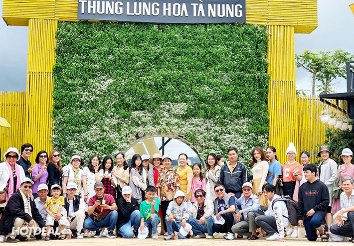 08h00: Xe đưa quý khách đến tham quan Thung lũng hoa Tà Nung. Với diện tích hơn 3 hecta nằm giữa view đồi núi mênh mông, đây là một điểm tham quan mới với những cánh đồng hoa đầy màu sắc, cảnh đẹp thiên nhiên, thơ mộng, những căn nhà gỗ được trang trí đầy hoa siu dễ thương; có quán Coffee Thung Lũng Hoa siêu cute với view 360, nhiều góc sống ảo đẹp chất, xịn xò.
