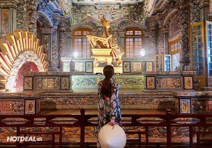 Du khách tham quan Lăng Khải Định, nơi chôn cất một vị vua gần cuối đời nhà Nguyễn, với kiến trúc pha lẫn giữa nét hiện đại phương Tây và cổ điển phương Đông sẽ làm quý khách không khỏi ngạc nhiên.