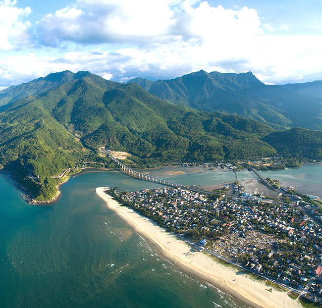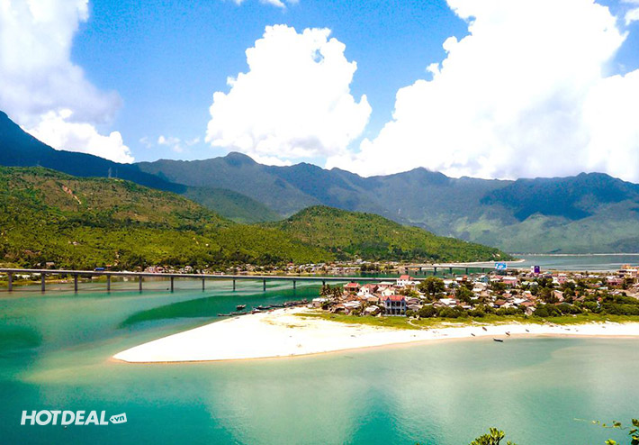 Trên đường ra Huế, vịnh Lăng Cô hiện ra trước mắt quý khách với phong cảnh biển xanh ngát và đầy thơ mộng.