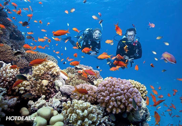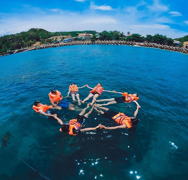 - Nước uống, áo phao, kính lặn, chân vịt ... nhân viên hướng dẫn trực tiếp lặn ngắm san hô tại Đảo Cù Lao Chàm