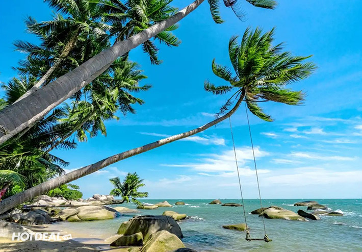 - Tham quan vòng quanh đảo bằng xe máy: Thác nước Bảy tầng, Quán Bia, Lăng Ông Nam Hải, Bãi Bàng…
