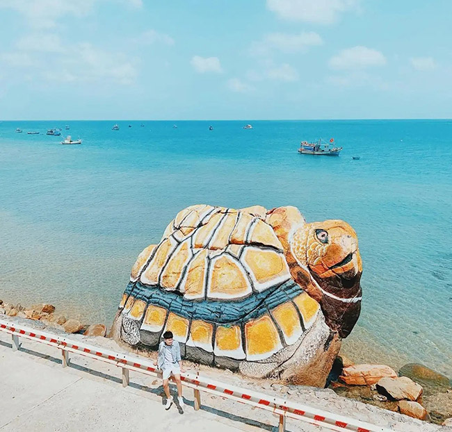- Điểm dừng chân tiếp theo là Lăng Ông Nam Hải – điểm du lịch tâm linh được xây dựng trên một mõm đá nhô ra biển. Tham quan và chụp ảnh cùng các cây dừa nằm tại Bãi Bấc – quý khách cũng có thể mua hải sản tại đây để mang về làm quà cho người thân.