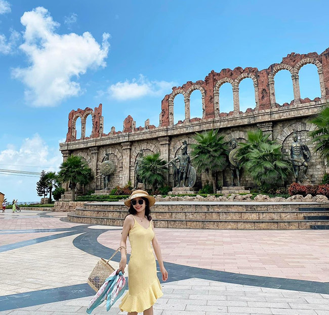 Đoàn tham quan, chụp hình tại thị trấn Địa Trung Hải hay shophouse Địa Trung Hải: được ưu ái nằm trên con đường huyết mạch đưa du khách đến ga cáp treo, được xây dựng theo phong cách châu Âu với lối kiến trúc cổ kính, những dãy nhà phố mang màu sắc hoài niệm đặc trưng hay công trình tháp đồng hồ đẹp như trời Tây… nằm men theo bờ biển tạo nên một khung cảnh vô cùng độc đáo.