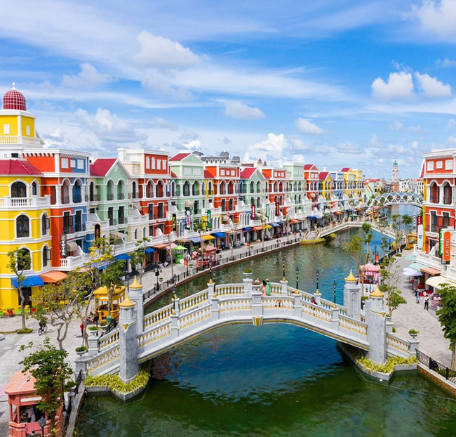 Du ngoạn dòng sông Venice (Ý): 3 cây cầu có vòm bán nguyệt được thiết kế theo đặc trưng kiến trúc châu Âu. Lấy cảm hứng từ dòng sông Venice lãng mạn tại Ý, tại Grand World Phú Quốc, tất cả được tái hiện sinh động bằng hình ảnh những chiếc thuyền Gondola đậu trên sông, được chèo bởi các chàng trai mặc trang phục đậm chất lãng tử Ý. (chi phí tự túc)